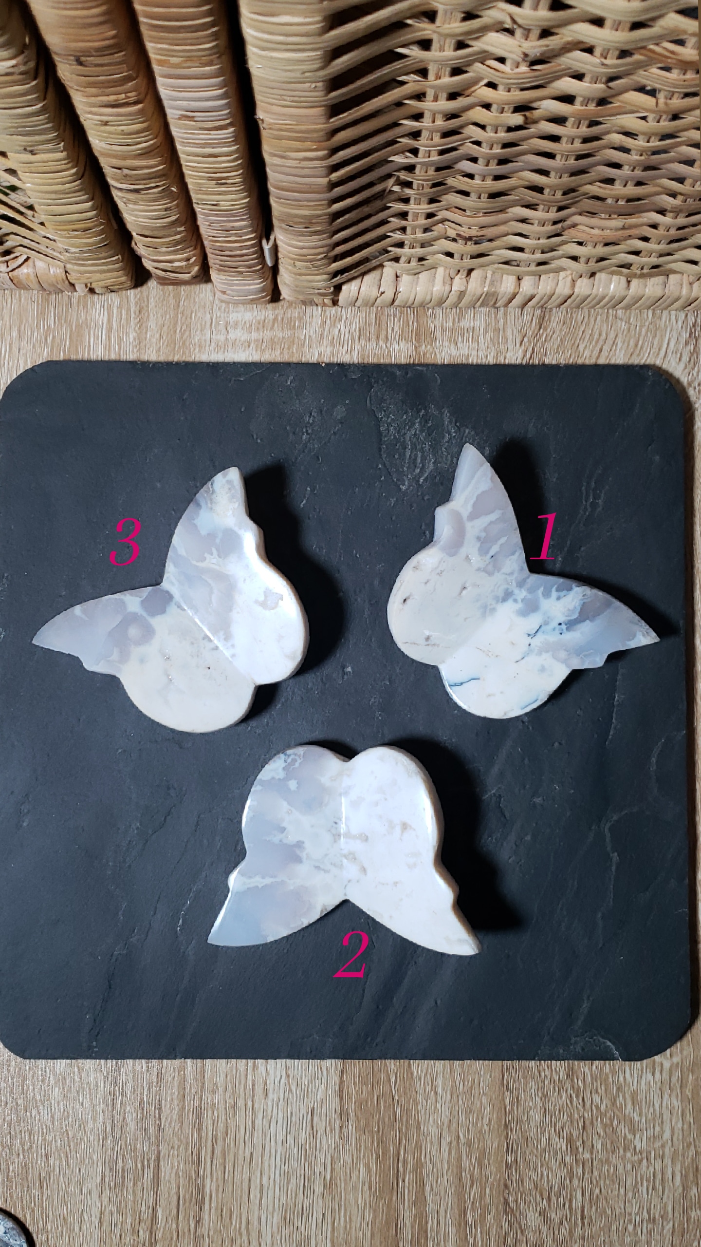 Papillons en Agate Plume Blanche AA